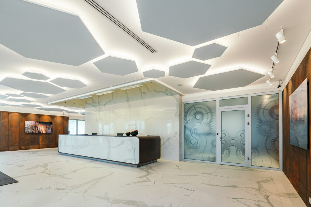 Byggnaden har glasfasader och byggnadens design kombinerar estetiska och funktionella egenskaper och använder högkvalitativa material. Golvytor på nära 1 000 m2 ger flexibilitet och möjlighet till företagsspecifika kontorslayouter.